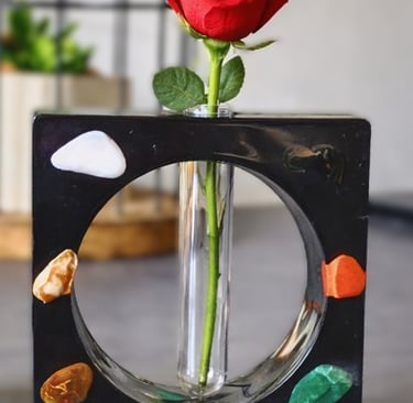 Découvrez nos créations artisanales en résine époxy ornées de pierres minérales.