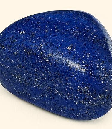 Le lapis-lazuli, éclatant par ses nuances allant du bleu profond au bleu nuit parsemé de reflets dorés de pyrite, est reconnu comme la pierre de la vérité et de la sagesse intérieure. Issue de roches métamorphiques, elle séduit par son intensité céleste et son énergie noble, en faisant un symbole de connaissance, de clairvoyance et de connexion spirituelle. En lithothérapie, elle est associée au chakra de la gorge et du troisième œil, favorisant l’expression authentique, la communication sincère et l’éveil intuitif.
