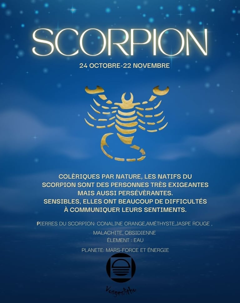 ✨ Signes astrologiques associés : Cancer, Bélier, Scorpion, Lion